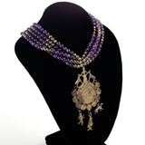 Amethyst Beaded Vintage Necklace with Peruvian Coin