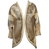 Note: 1980's Japanese patchwork cocoon style coat with leather and silk brocade lining and leather trim. Crane and bamboo leafs are a repeating motif. There is a front closure clasp.