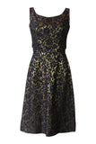 1960's navy and gold sleeveless brocade dress. Knee Length.