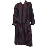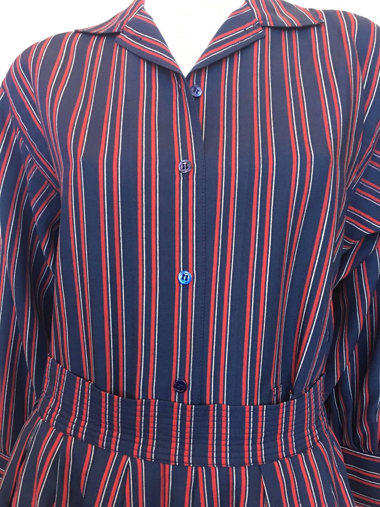1970's Saint Laurent Blue & Red Striped Wool 2 piece Skirt Set