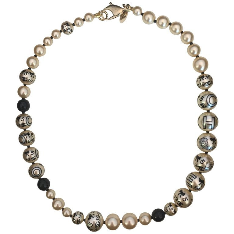 Chanel 1990's Faux Pearls with Coco Chanel Print on Strand