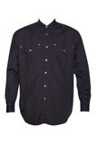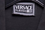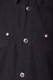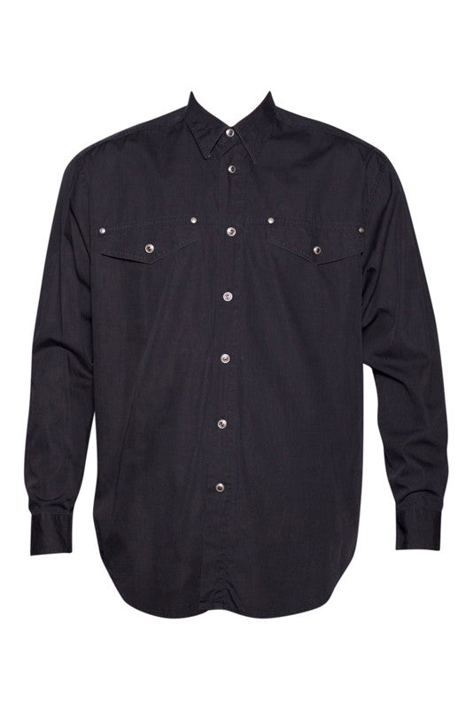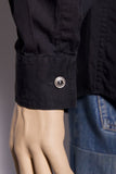 Versace classic black cotton long sleeve cowboy shirt with silver buttons and flap pocket detail.