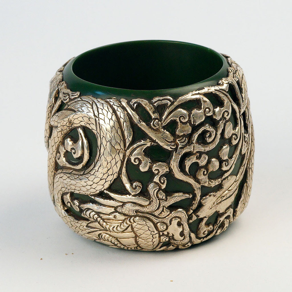 Note: Vintage Silver Dragon Bracelet with green interior shell.