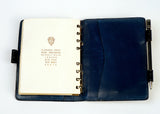 Note: Gucci midnight blue baby croc address book with pen and some original pages dated 1971.