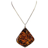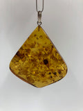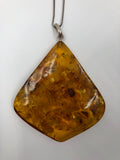 Note: Vintage necklace with triangular Amber stone on a sterling silver chain.