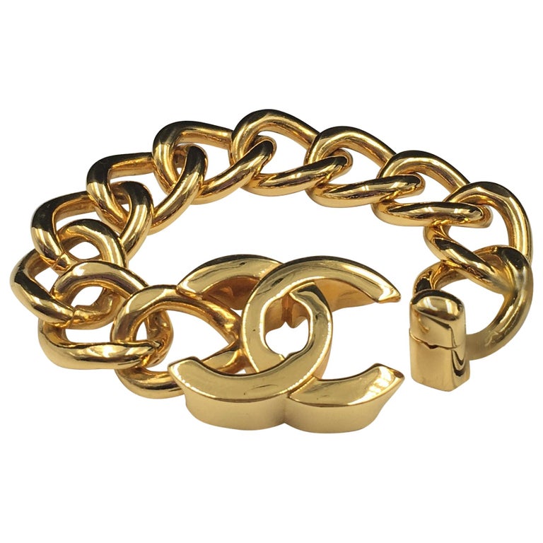 Chanel Gold Tone CC Logo Chunky Chain Bracelet