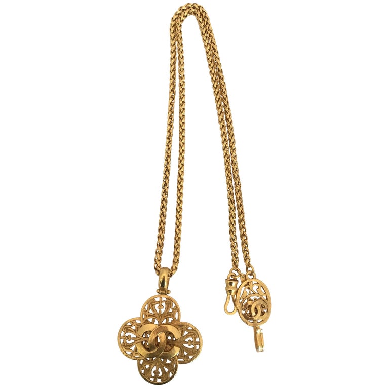 Chanel Filigree 1980's Gold Tone Cross Necklace