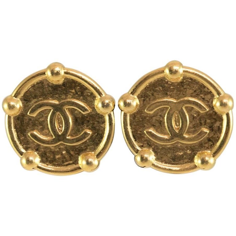 CHANEL gold tone clip on earrings. Made in France engraved on the back.