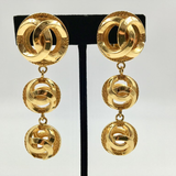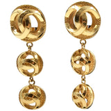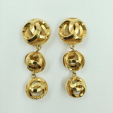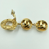 Chanel Gold Tone CC Logo Drop Clip On Earrings