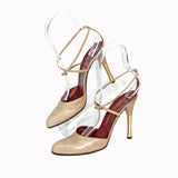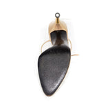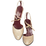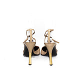 Charles Jourdan Criss Cross Strap Tan Heels with a 2 Inch Gold Metal Heel