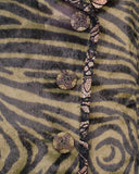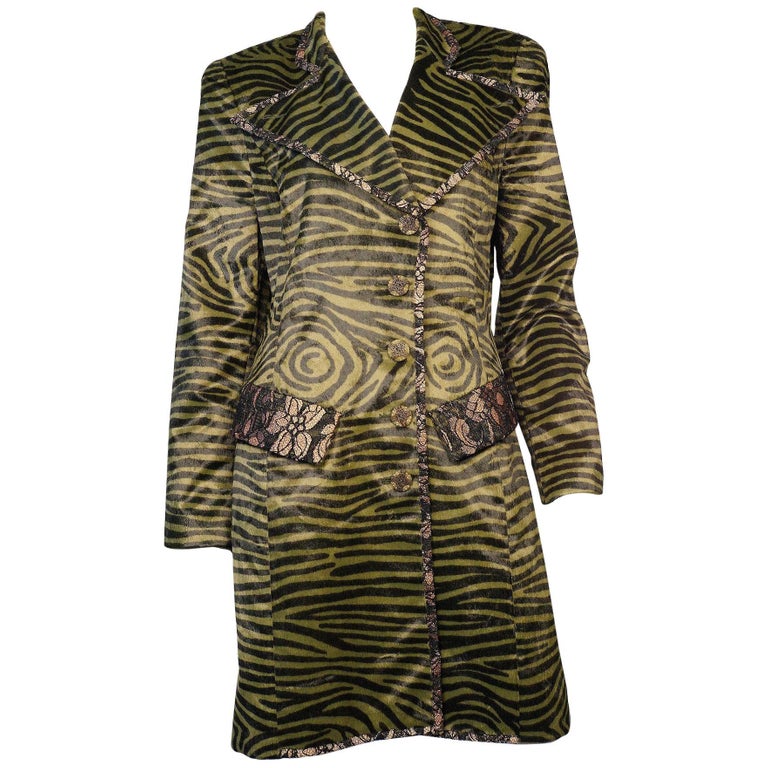 Christian Lacroix for Bazar Tiger print coat with fantastic wide lapels with black lace trim along the pockets and lapel.