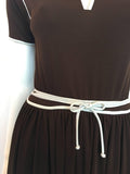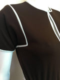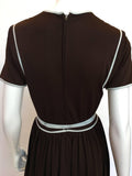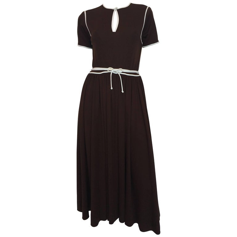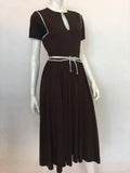 1970's Donald Brooks Brown Poly Dress With White Piping