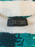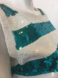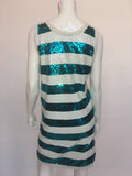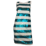 Gene Ewing Sequin Turquoise and White Striped Shift Dress