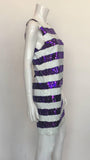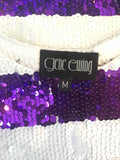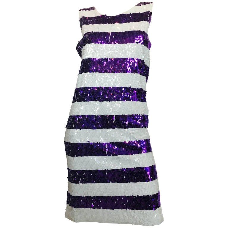 Gene Ewing Sequin Purple and White Striped Shift Dress