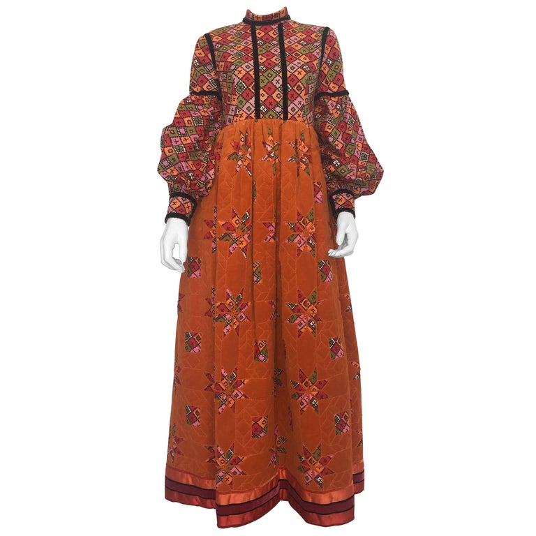Geoffrey Beene 1960's Orange Multi-Color Dress With Quilted Skirt
