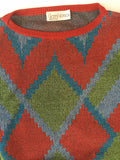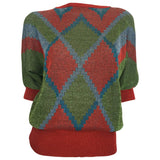 Gianni Versace 1980's Red, Green, Blue Argyle Dolman Sleeve Knit Sweater w/ Metallic Thread