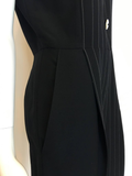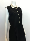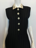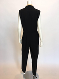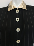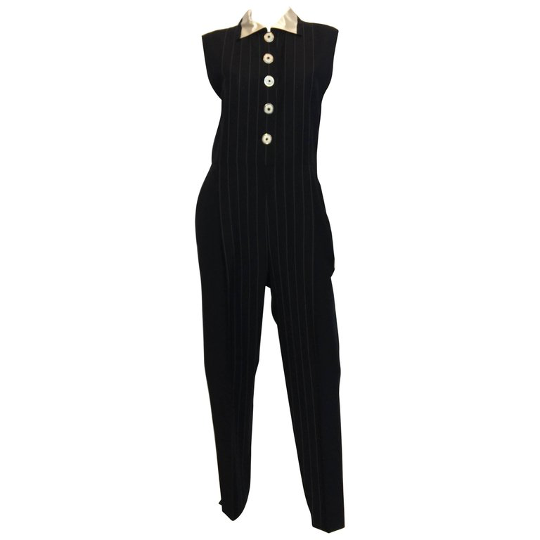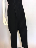 Gianni Versace Couture 1980's Black Pin Striped Jumpsuit. Light weight wool , inset button holes with shell buttons. Has a satin collar with trouser pockets.