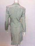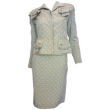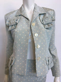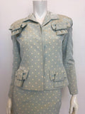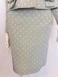 Givenchy 1990's Powder Blue Polka Dot Fully Lined Skirt Suit. 50% Cotton 50% Viscose