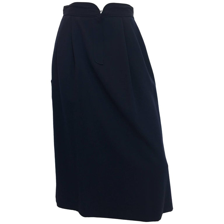 Gucci 1970's Navy Gabardine Wool Pleated Skirt