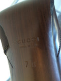 Note: These Gucci pumps have never been worn, although they do have a small scuff on the back of the left shoe