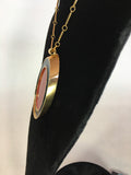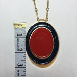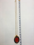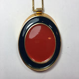 Guy Laroche Gold Tone Necklace with Red + Navy Enamel Plated Oval Pendant