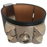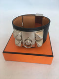 Hermès Cuir Collier de Chien Black & Silver Leather Cuff Bracelet