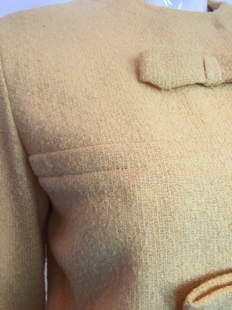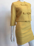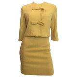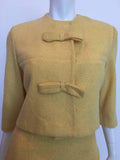 Jackie O Mod Style 1960's Butter Yellow Knubby Knit 2 Piece Skirt Suit