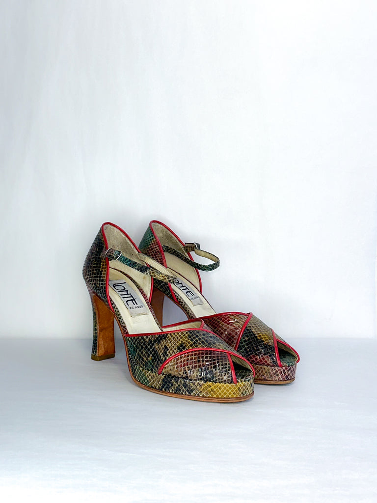 • Lonte Peep-Toe Snakeskin Tango Heels