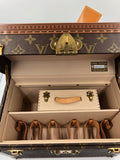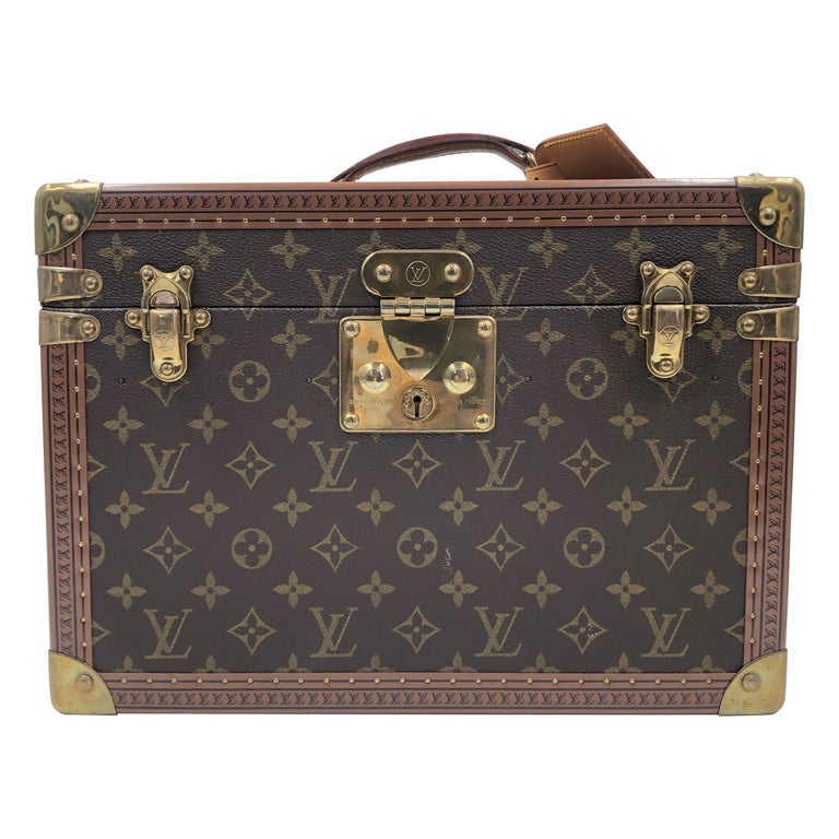 Louis Vuitton Pre-Owned monogram canvas train case featuring a top handle, multiple interior compartments, monogram print and gold-tone hardware. Removable small box with a mirror inside. Two Louis Vuitton stamped keys included with luggage tag. Entrupy certificate of authenticity. See all pictures for minor wear as this train case was gently loved.