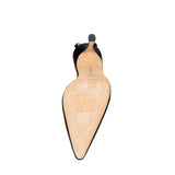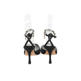• Manolo Blahnik Black Satin Pointy Toe Heel With Rhinestone Loop Ankle Strap