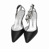 Manolo Blahnik Black Satin Pointy Toe Heel With Rhinestone Loop Ankle Strap