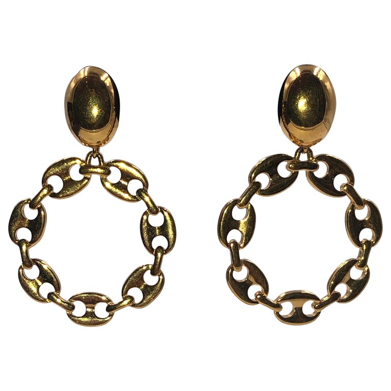 Monet Gucci Style Link Round Gold Tone Pierced Earrings