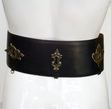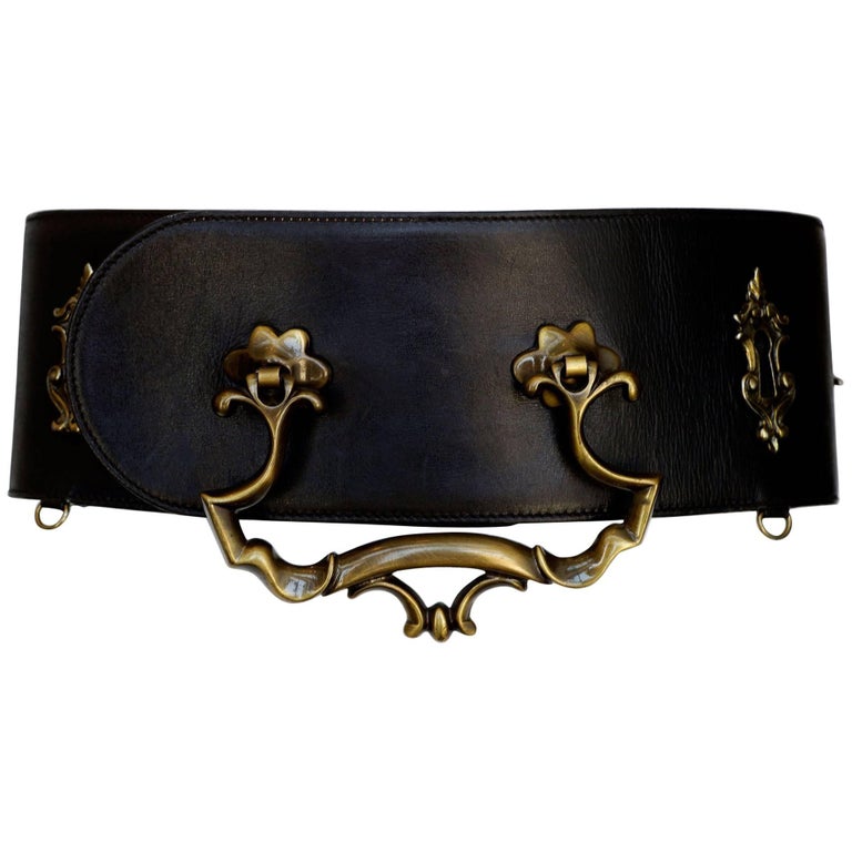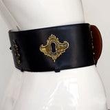 Note: Fabulous original vintage Redwall/Moschino buckle belt with gold key holes and a gold door knocker.