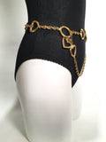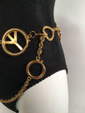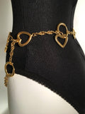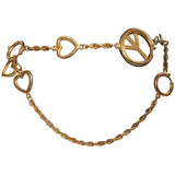 Moschino Gold Charm Chain Belt with heart and peace sign detail.