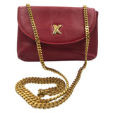 Paloma Picasso Red Leather Gold Chain Crossbody Disco Bag. Gold Signature X on front of bag. Gold hardware. Paloma Picasso signature embossed on back of bag.