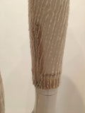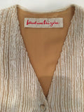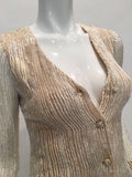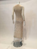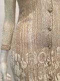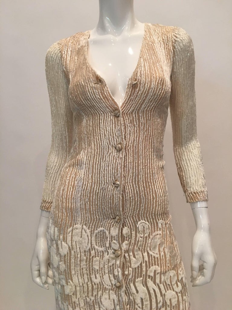 Pauline Trigere 1970's Ivory Cut Velvet Button Front Long Dress with Nude Silk Lining and 8 Front Buttons
