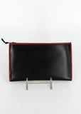 Judith Leiber black leather wallet with red trim.