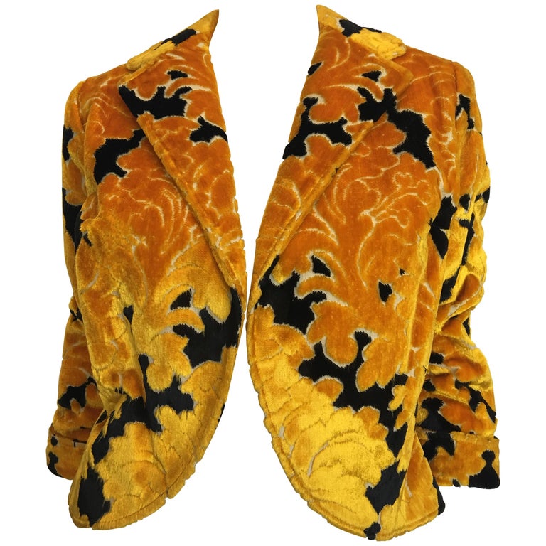 1960s Rudi Gernreich Neiman Marcus Trophy Room Yellow and Black Velvet Brocade Cropped Jacket