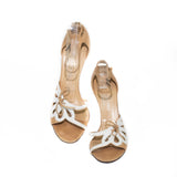 Valentino Beige Ankle Strap with White Leather Cut Out Flower.