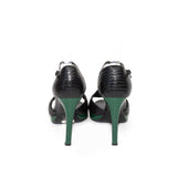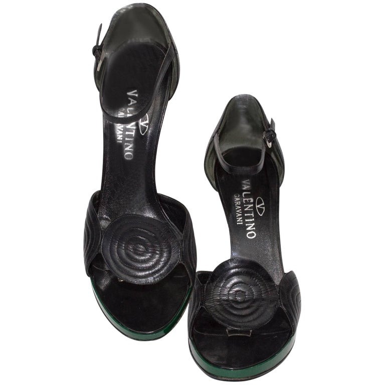 Valentino Garavani Black Leather Ankle Strap Platforms With Quarter Inch Green Patent Leather Platform and Heel.