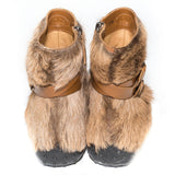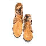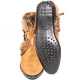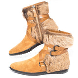 Tod's Tan Suede Goat Fur Boots with a Criss Cross Front Leather Strap.