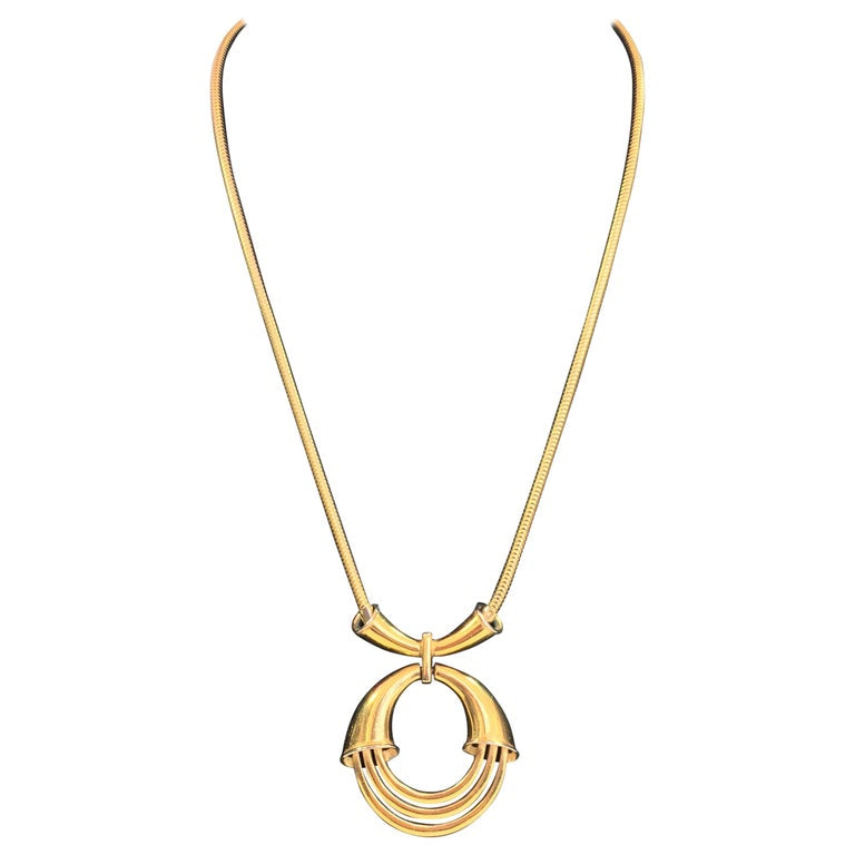 Trifari Circular Design Gold Tone Necklace with Round Snake Chain