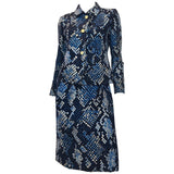 Unique 1960's Blue Snakeskin Print 2 Piece Suit
