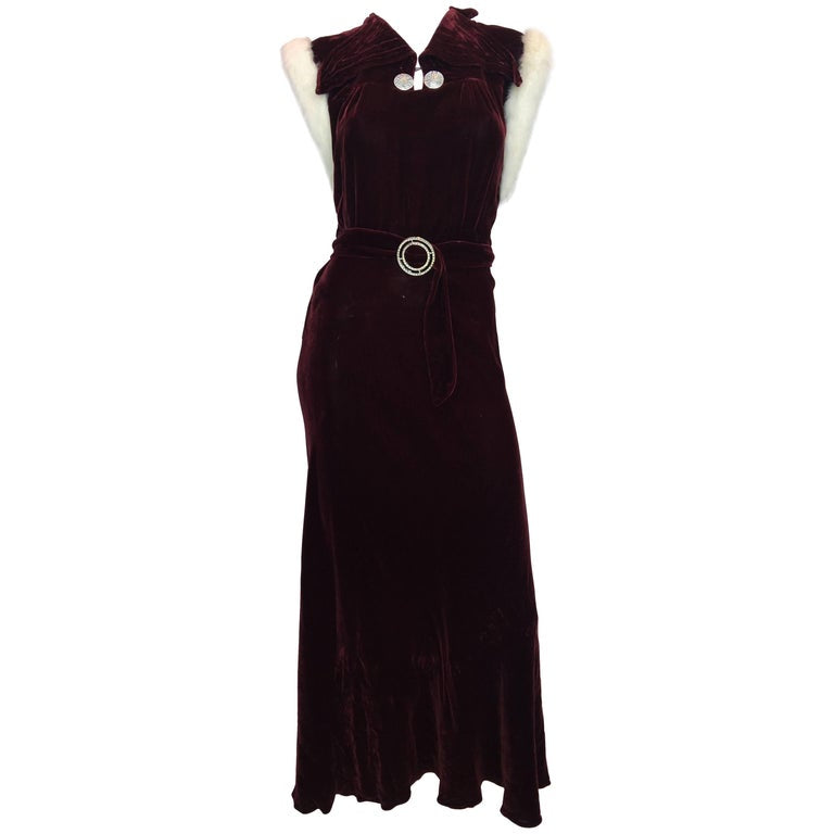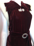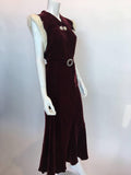 Vintage 1930's Burgundy Velvet Dress with Rabbit Fur Trimmed Sleeves