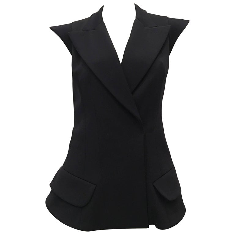 Yves Saint Laurent Wool Midnight Blue Double Breasted Vest with 2 front pockets.