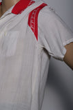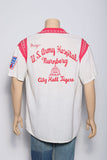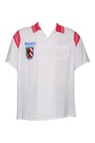 White bowling shirt with red knit collar and bowling pin buttons from 1961. U.S. Army Hospital Nurnberg.