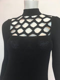 Adolfo at Saks Fifth Avenue 1970's Black Knit Lattice Dress